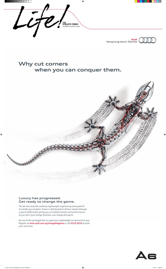 Audi A6, 2011 Teaser Ad Illustrations Client: Audi Creative Agency: IRIS Singapore Creative Director: Subha Naidu Share this: Click to share on Facebook (Opens in new window) Facebook Click to share on X (Opens in new window) X Like Loading... Related